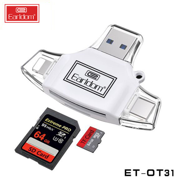 - Đầu đọc thẻ nhớ 3in1 OTG Earldom ET-OT31 giúp bạn truyền dữ liệu, hình ảnh từ thẻ nhớ SD và TF vào chiếc smartphone hoặc máy tính giúp bạn thao tác dễ dàng và thuận tiện hơn trong công việc