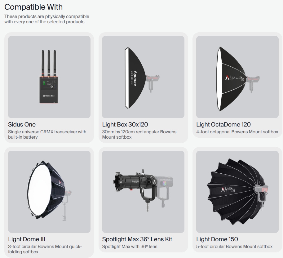 - Đèn STORM 700x có tính năng điều khiển không dây với Sidus Bluetooth Mesh, CRMX và DMX 5 chân, tương thích với phần mềm điều khiển ánh sáng chuyên nghiệp.