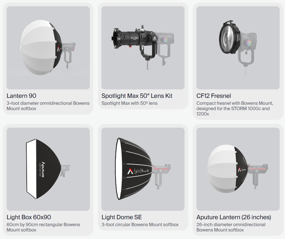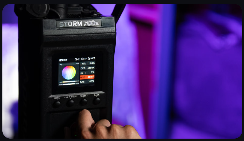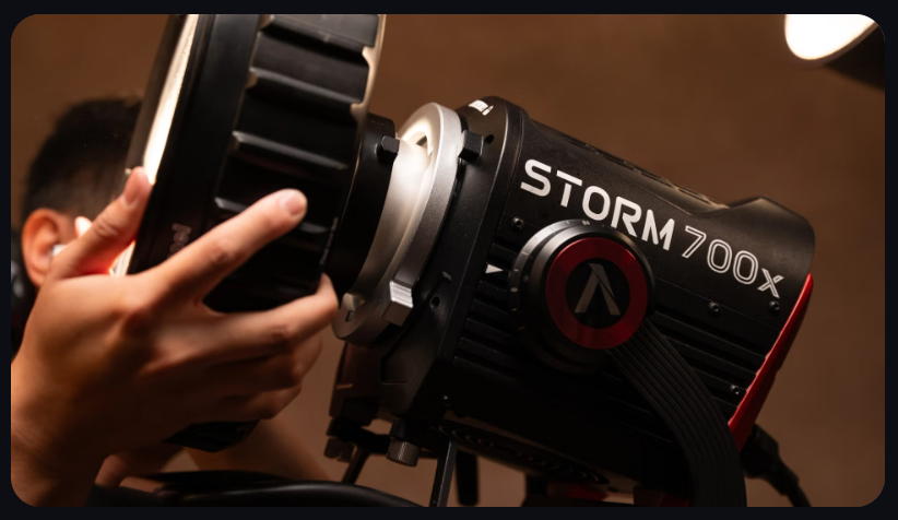 - Đèn Aputure STORM 700x sử dụng công nghệ chiếu sáng BLAIR (Xanh lam/Xanh lá cây/Vàng hổ phách/Chàm/Đỏ)