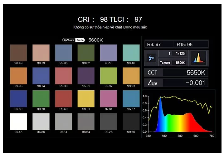 - Với chóa đèn được thiết kế chính xác đi kèm, đèn có khả năng phát ra cường độ sáng ấn tượng 34.890 lux ở nhiệt độ màu 5600K. Forza 200 có chỉ số CRI là 98 và chỉ số TLCI trung bình là 97, đảm bảo độ hoàn màu đồng nhất.