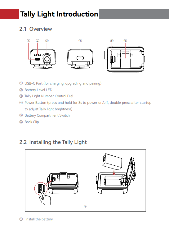 - Cực kỳ nhẹ, đèn Tally chỉ nặng 98,5g (có pin).