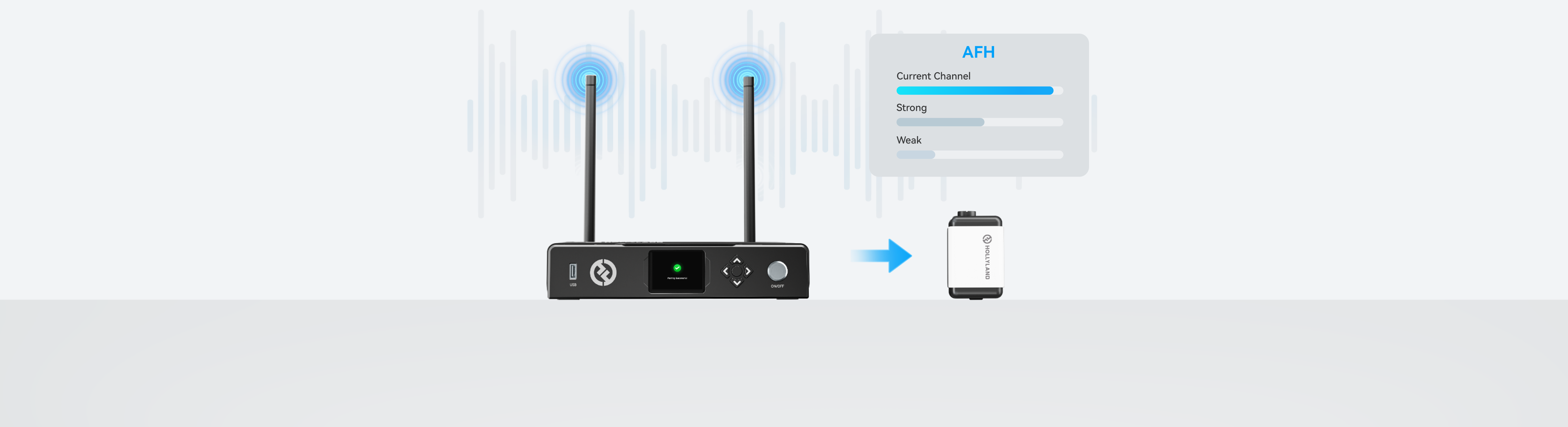 - Với tính năng nhảy tần thích ứng, Hệ thống Tally không dây này có thể phát hiện nhiễu trong các tình huống phức tạp và chuyển sang kênh có ít nhiễu hơn để đảm bảo truyền tín hiệu ổn định.