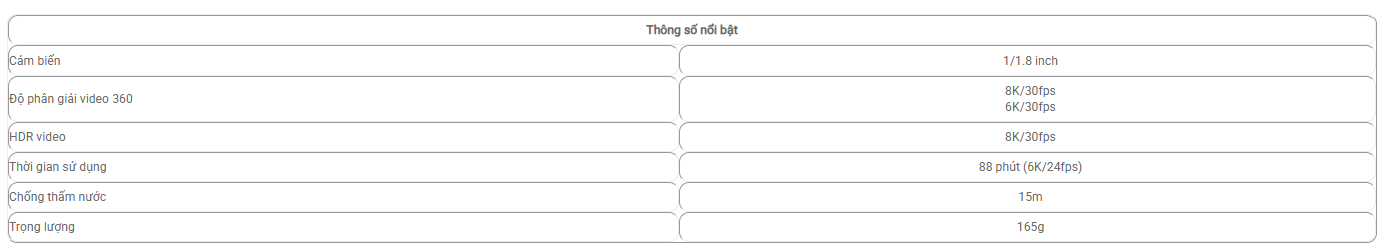 - Quay video 360 độ 8K/30fps Active HDR