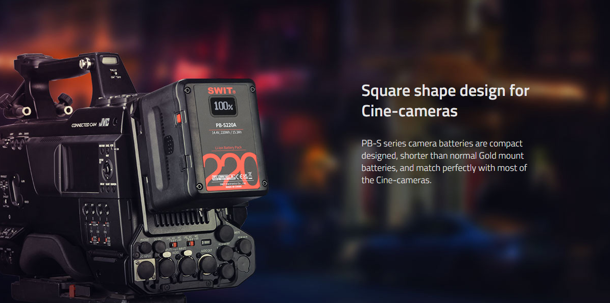 - Pin V-Mount SWIT PB-S220S là mẫu pin thuộc dòng pin máy quay PB-S được thiết kế nhỏ gọn, ngắn hơn pin Gold mount thông thường và hoàn toàn phù hợp với hầu hết các máy quay Cine.