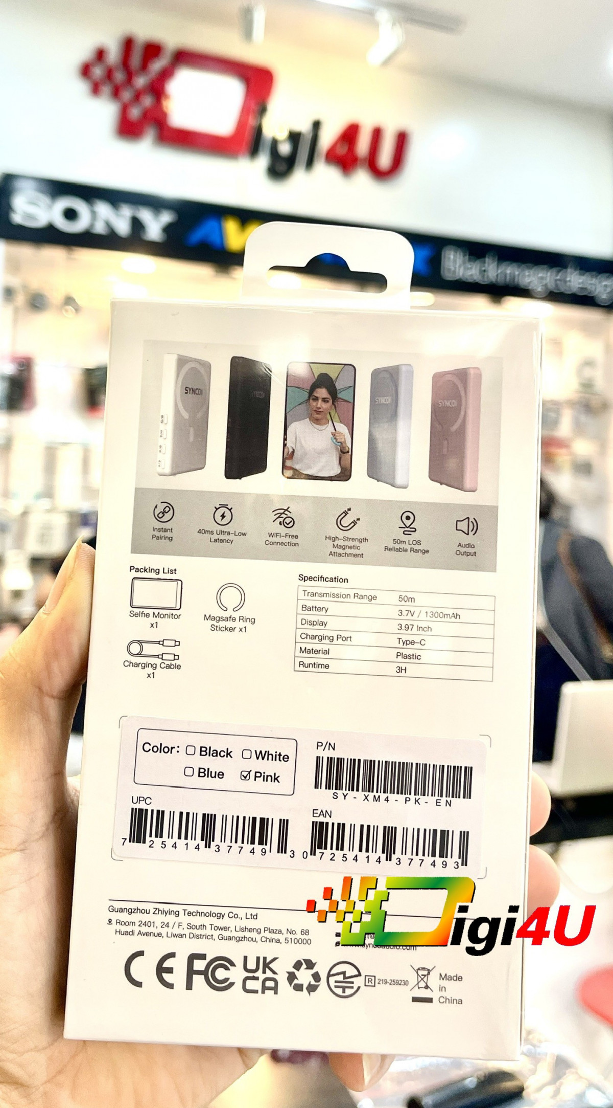 - Màn hình theo dõi selfie Synco XView M4 kết nối trực tiếp với điện thoại của bạn bằng công nghệ P2P nhanh, ổn định — không cần WiFi, không cần thiết lập rườm rà. Chỉ cần kẹp vào và xem chính mình trong thời gian thực với độ trễ cực thấp 40ms. Điều này giúp chụp ảnh selfie bằng camera sau, vlog và phát trực tiếp dễ dàng và sắc nét hơn bao giờ hết.