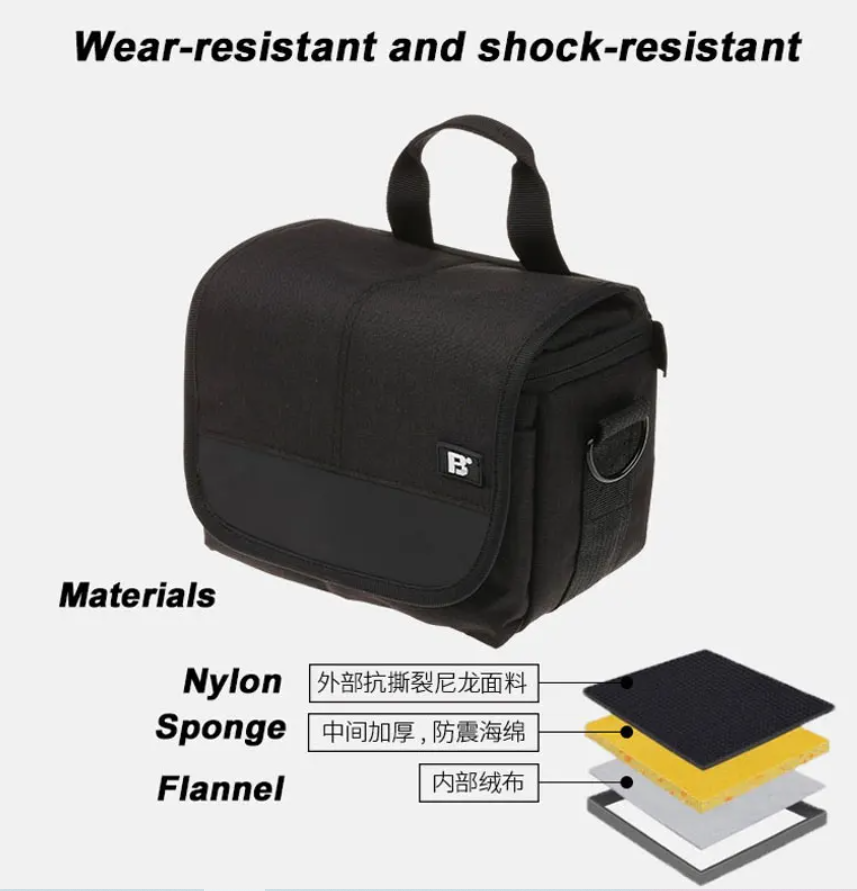 Túi đựng Handycam hoặc máy ảnh được làm bằng nylon chống nước và có lớp đệm bên trong, túi chứa một ngăn và thêm tấm lót có thể duy chuyển thành nhiều ngăn nhỏ.